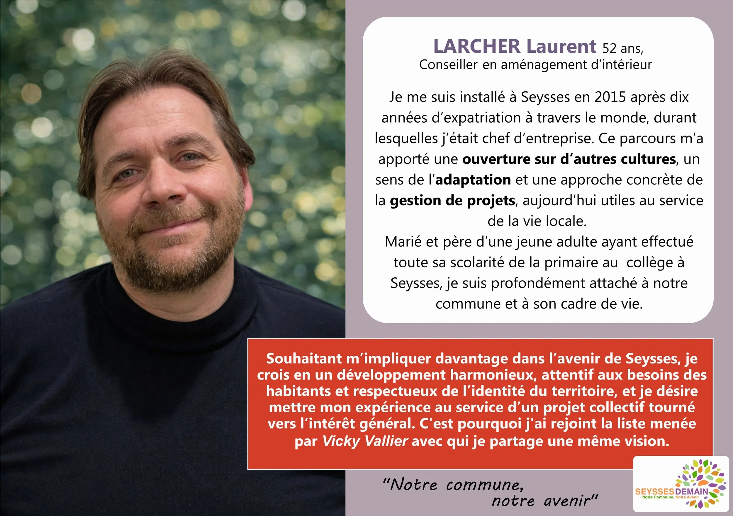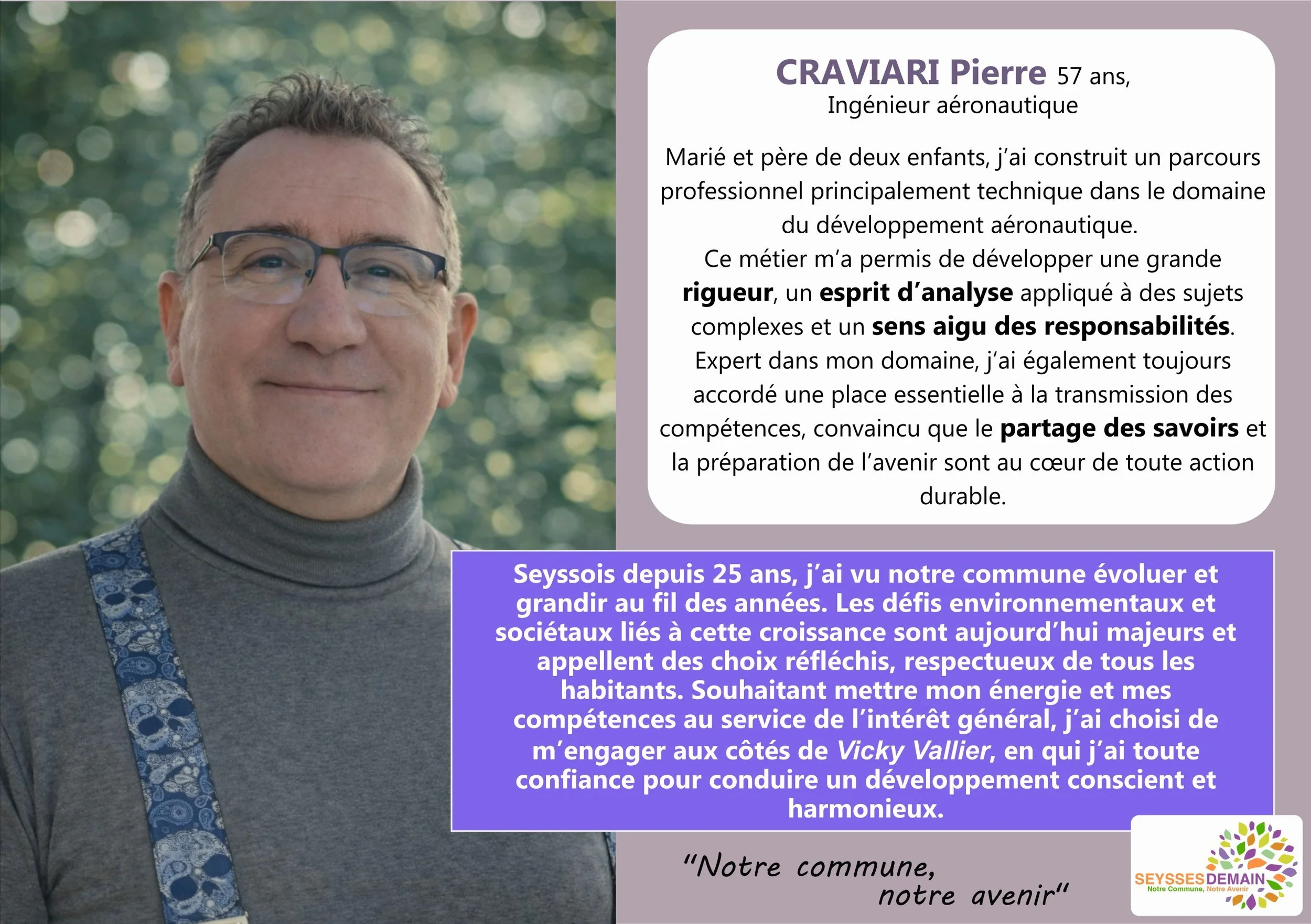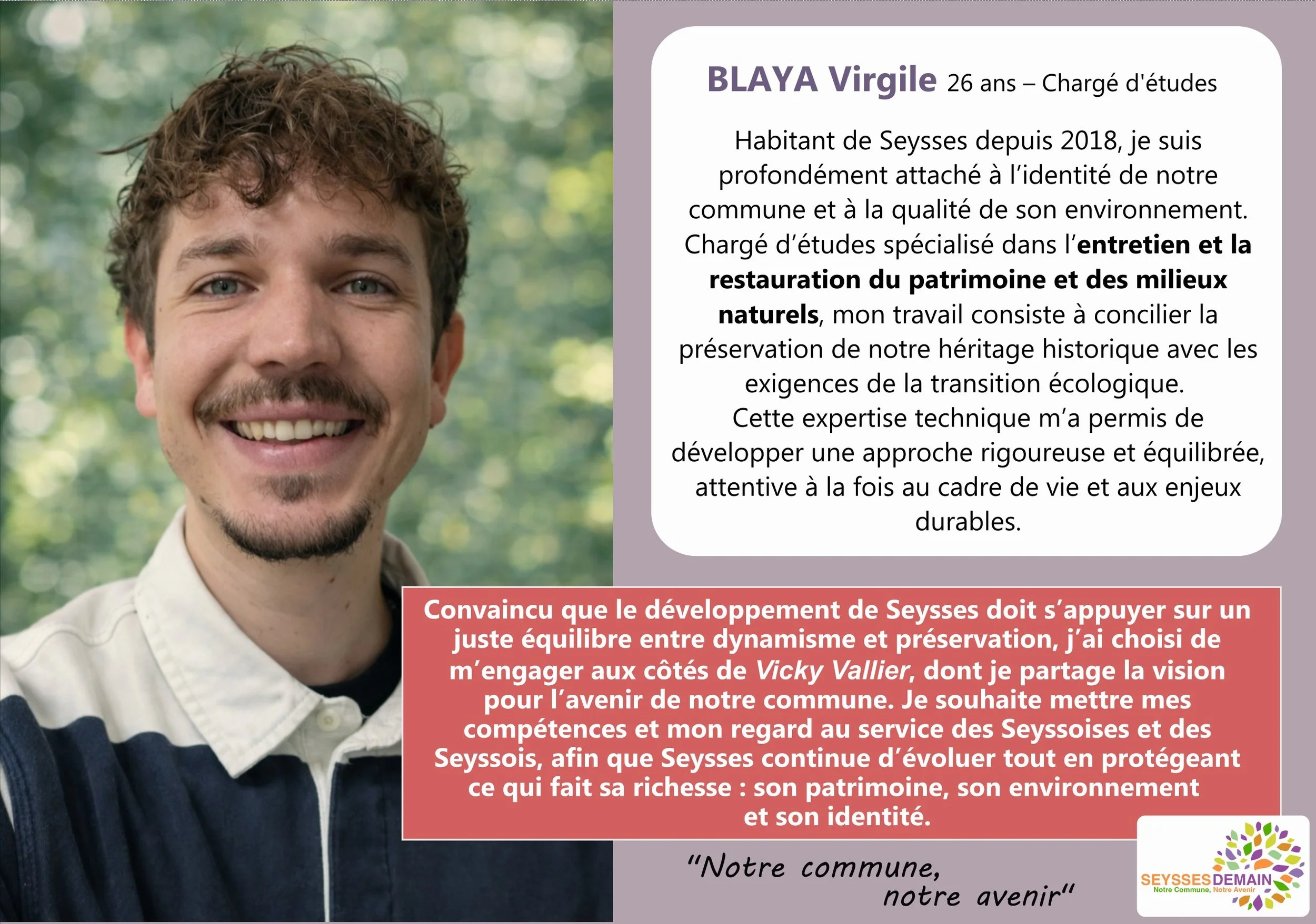 Cette liste est avant tout le reflet de Seysses. Elle réunit plusieurs générations, des plus jeunes aux plus expérimentés, parce que nous croyons profondément que l’avenir de notre commune se construit en croisant les regards, les idées et les expériences.